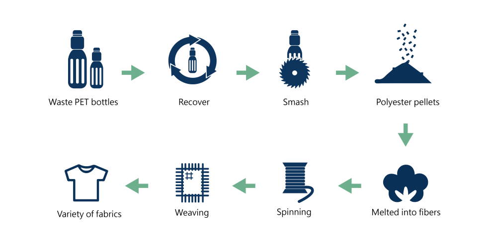 Indeed drinking plastic bottles can be recycled. RPET fabric is a new environmentally friendly material. Drinking bottles are made of polyethylene terephthalate (PET), which can be melted and re-woven to be 'recycled' into fabric, thus reducing waste in our environment and landfills. Therefore, when buying products with RPET, you are giving a second life to the material, creating a demand for recycling and waste reduction, also saving energy, reducing CO2 emissions, and lowering the use of petrochemical materials. This is happening in US, UK, Taiwan, Mainland China, but Hong Kong has not concern about this yet.